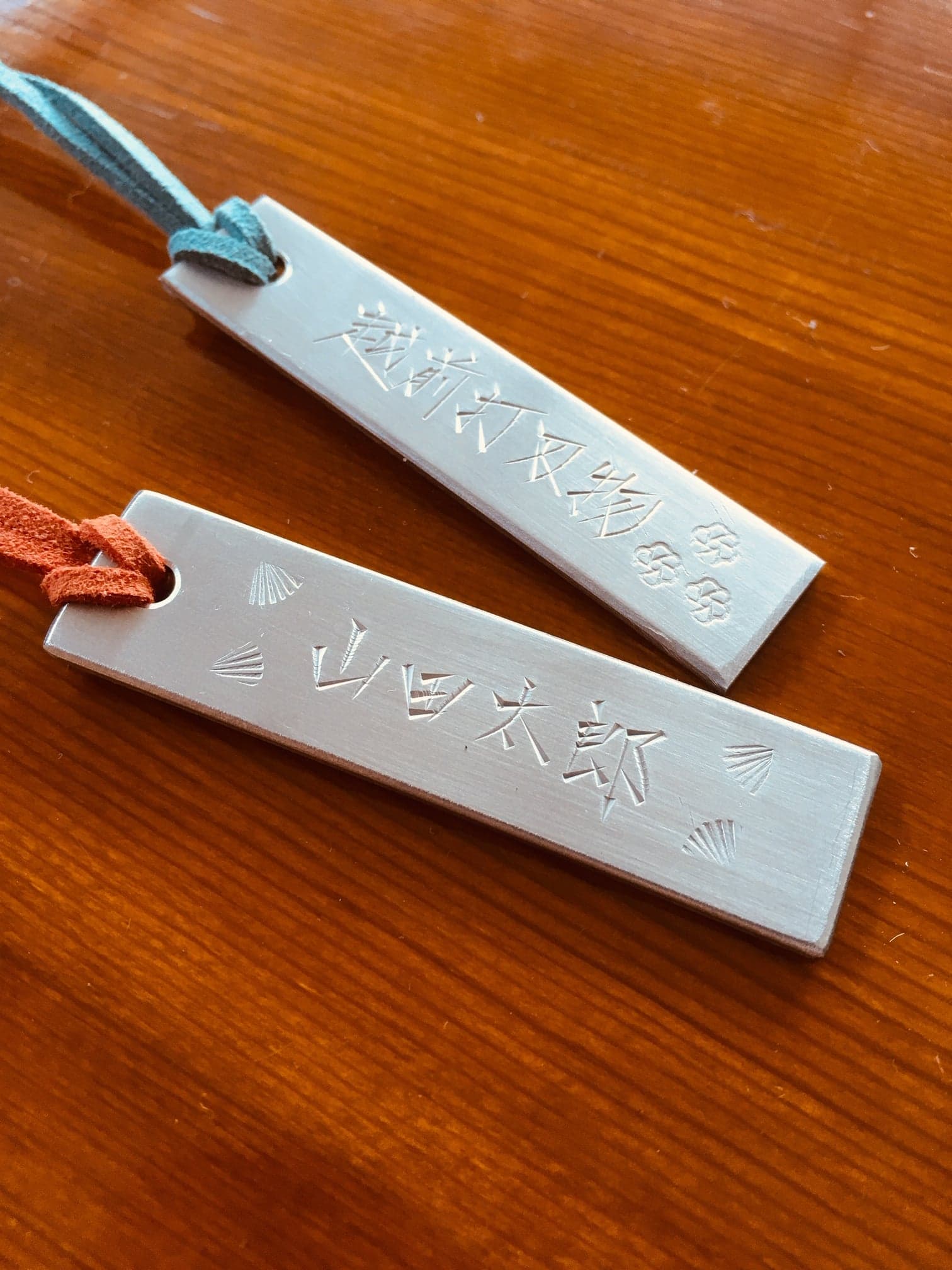 [武生刃物卸商業協同組合] タガネとカナヅチを使って、プレートに自分の名前を切っていきます。 ■スケジュール 8月31日(土) 15:00〜 9月1日(日) 13:00〜 工藝ワークショップのお申し込みは、エントランスの受付にてご予約ください。