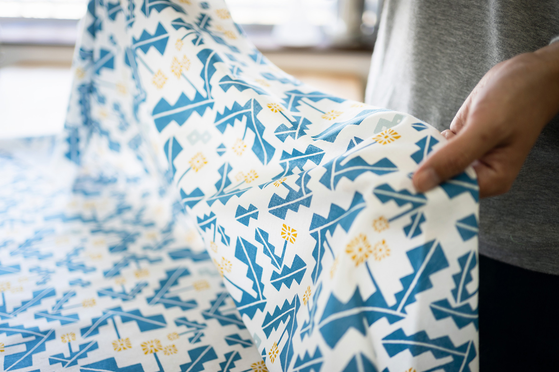 日々の暮らしの中で見つけた「心地よい形」をモチーフに模様を描き、仕立てた生地から布製品をひとつひとつ縫製し制作しています。また、ハンドメイドを楽しむ方向けに生地の販売も行っています。愛知県弥富市で夫婦二人で活動しています。山や木々、鳥や草花など、いつもそばにあった風景を切り取り模様に落とし込み、手作りの温かみを感じていただけるような商品作りを目指しています。生地のカット売りの他、ハンカチやポーチ、バッグなど、普段使いしていただける商品をご用意してお待ちしております。