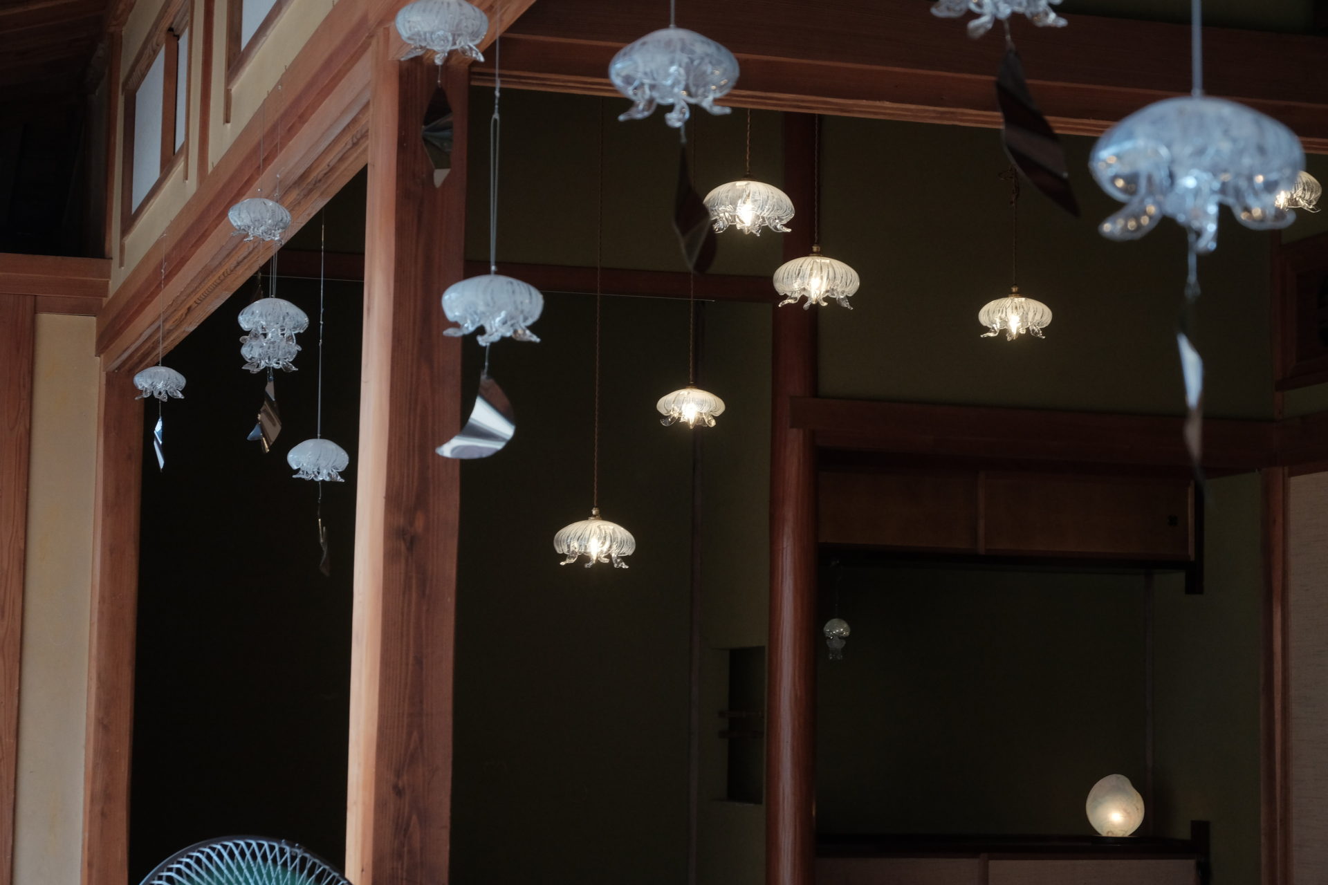 福井市の越前海岸沿いのガラス工房、ワタリグラススタジオです。自分でデザインし、自分で作る「スタジオグラス」のスタイルで制作をしています。工房併設のショップでの販売やガラス体験などもしていますが、レストランやインテリアショップからご注文をいただき、お話をして制作をさせていただくこともあります。スタジオグラスのスタイルで制作をするということは、素材を溶かすところから成形、加工仕上げのところまで手作業でするので、習得に時間がかかります。しかし、もっとも自由度の高いやり方でもあります。熱いガラス特有の軽やかな動きや、ずっしりと重い質感など、いろいろな表情を作れたらと思います。