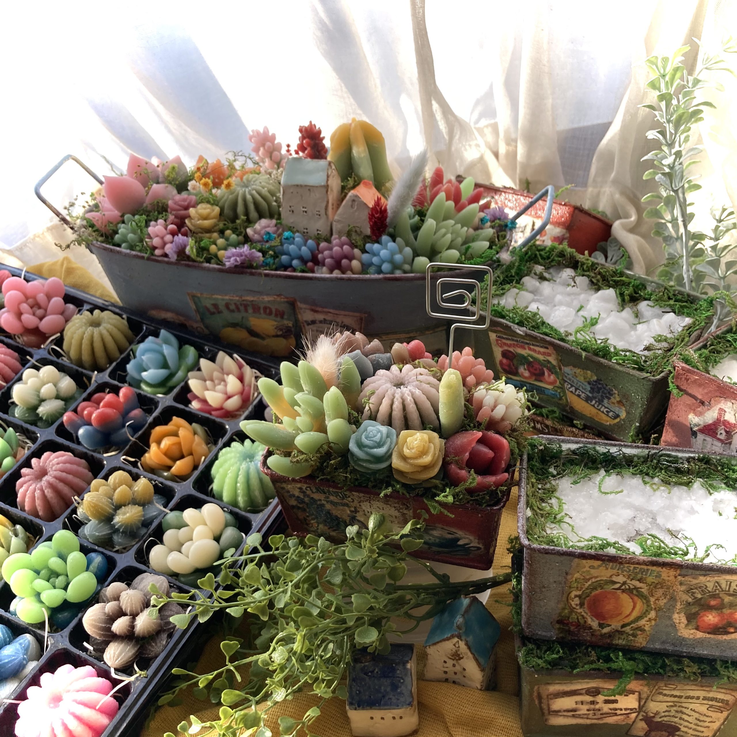 今年は1点もののリメイク缶を使用した多肉キャンドルの寄植えや大人気のぷにぷにフルーツソーダ作りを開催